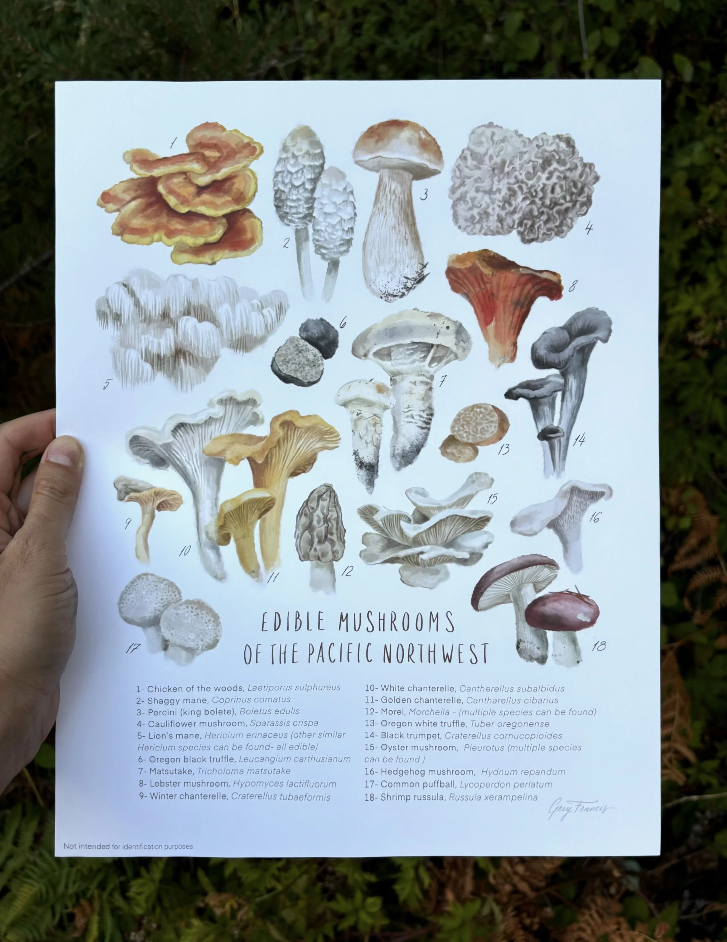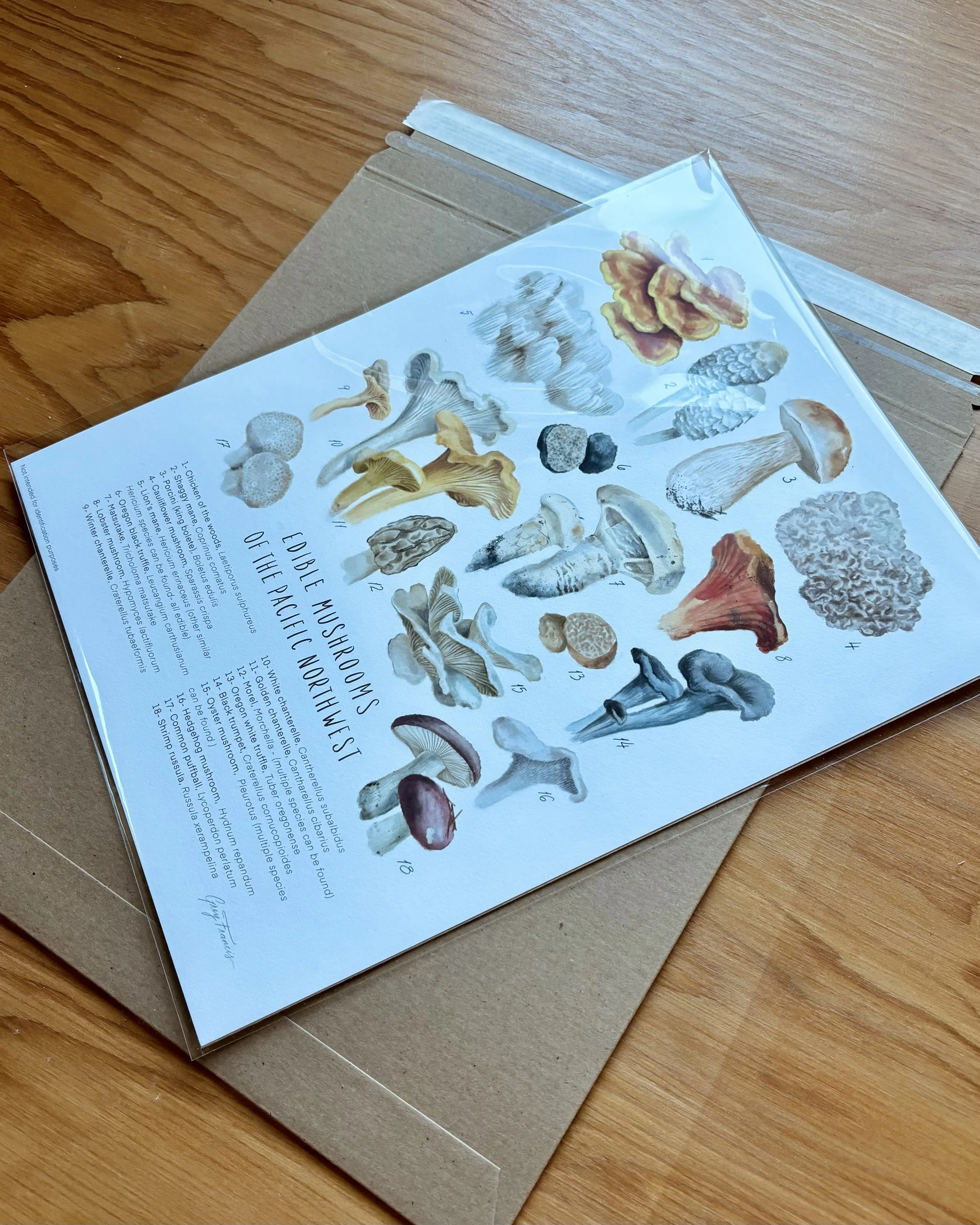 Store › Edible Mushrooms of the Pacific Northwest Image 1 of 2 Image 2 of 2 Edible Mushrooms of the Pacific Northwest $30.00 Printed on sturdy 11×14” archival paper. Shipped in plastic-free sleeve in a stay-flat envelope. Quantity: Add To Cart Added! Printed on sturdy 11×14” archival paper. Shipped in plastic-free sleeve in a stay-flat envelope.